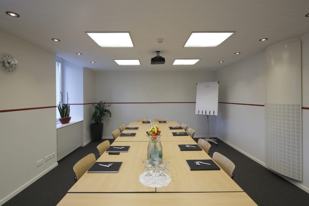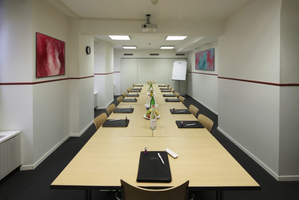 - Konferenzraum K1: Hier haben bis zu 35 Personen Platz. Sie können zwischen Theater-, Seminar- oder Blockbestuhlung im Fred Hotel Zürich wählen