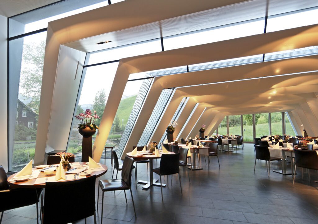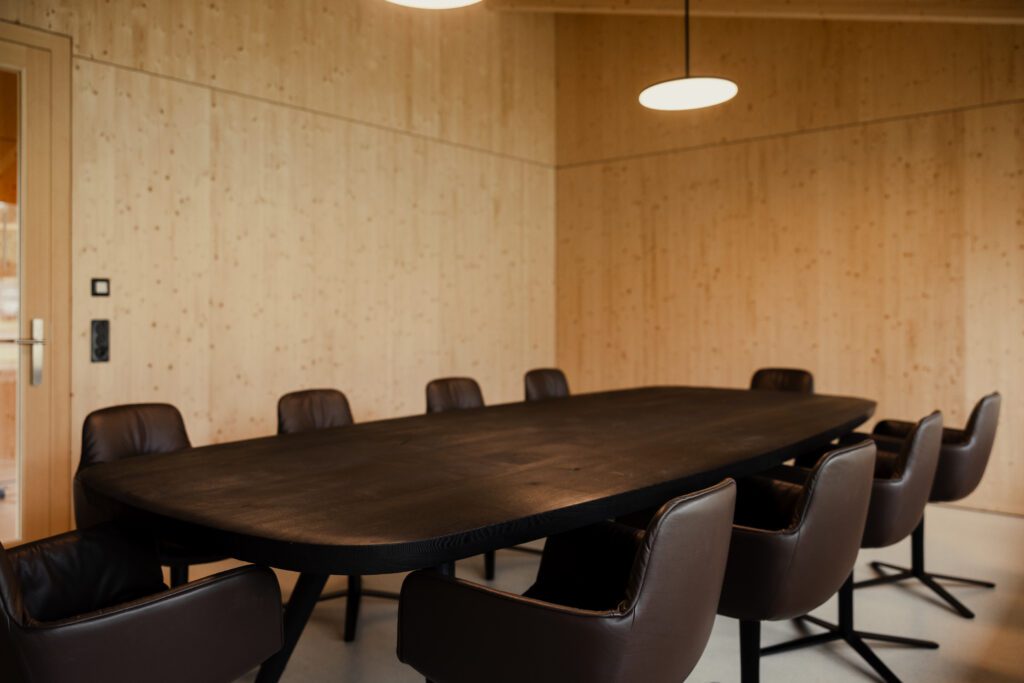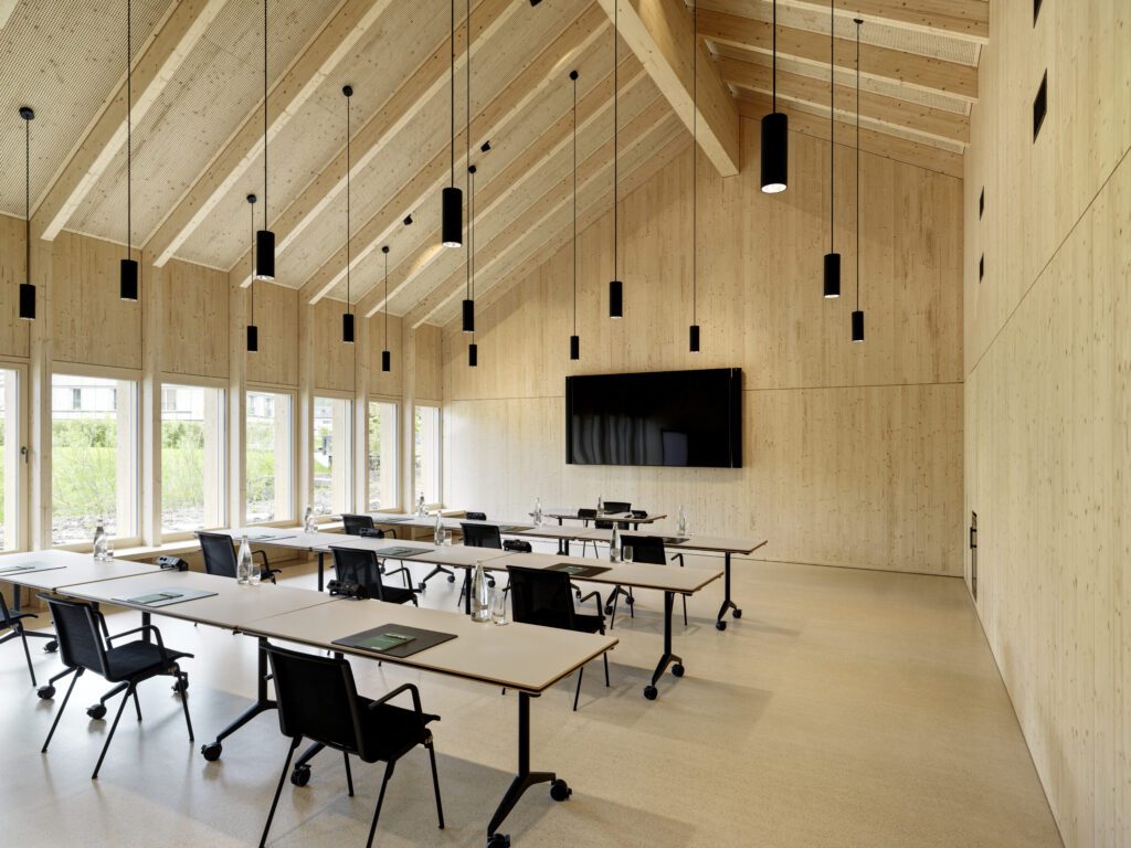 Die beeindruckende Holzkonstruktion mit grosser Fensterfront bietet eine einzigartige Panoramaaussicht. Alle Seminarräume sind hell, lichtdurchflutet und mit modernster Technik ausgestattet. Nebst zwei grossen Seminarräumen stehen ein Gruppenraum, ein Boardroom sowie Kreativ-Arbeitsplätze direkt am Bach zur Verfügung. Das grosszügige Foyer eignet sich perfekt für Stehlunches, Aperitifs, Kaffeepausen – die ideale Gelegenheit für Austausch und Networking.