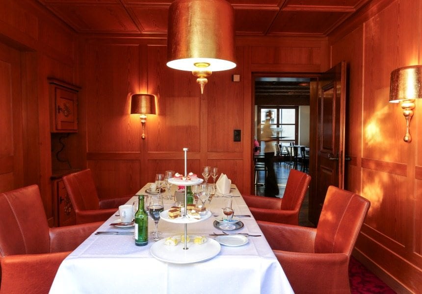 Die perfekte Räumlichkeit für diskrete Gespräche und gemütliches Essen für bis zu 8 Gäste. Die Wände des Stübli sind mit Arvenholz getäfert und verleihen dem Raum eine besonders heimelige Atmosphäre, die einen ganz besonderen Aufenthalt verspricht.