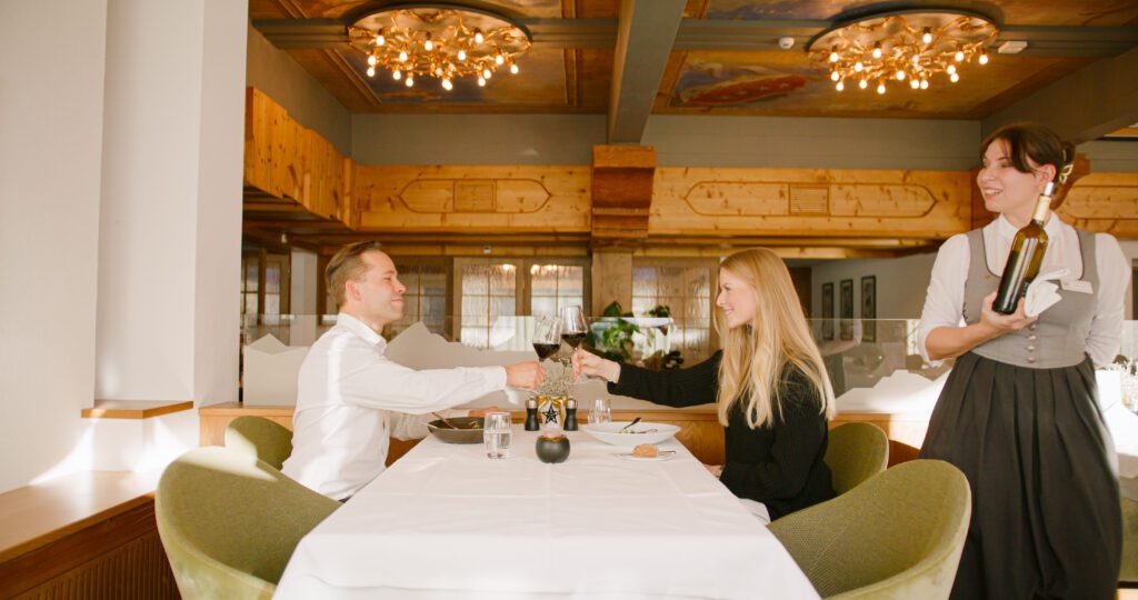 Kulinarisch setzt das Hotel mit seinen drei Restaurants auf Vielfalt und Qualität. Gäste können aus einer breiten Palette von kulinarischen Spezialitäten wählen, vom traditionellen Fondue bis hin zu internationalen Gerichten. Die optionale Genuss-Pension bietet ein 4-Gänge-Menü, das individuell kombinierbar ist, ergänzt durch ein reichhaltiges Frühstücksbuffet und ein leckeres Kuchenbuffet am Nachmittag.