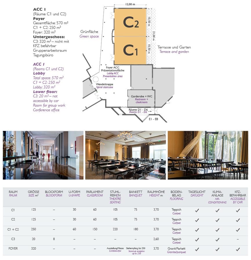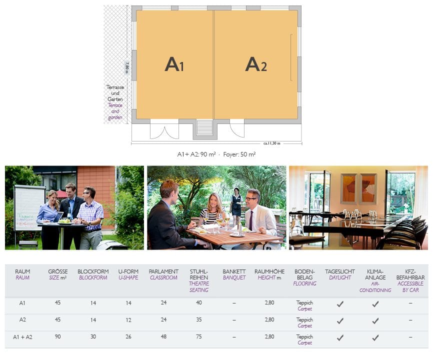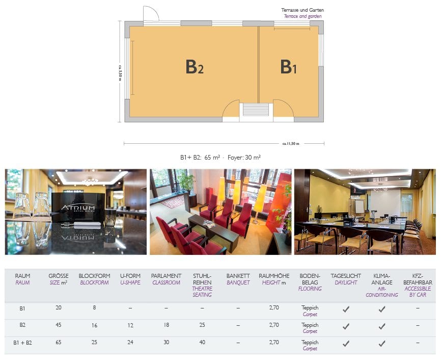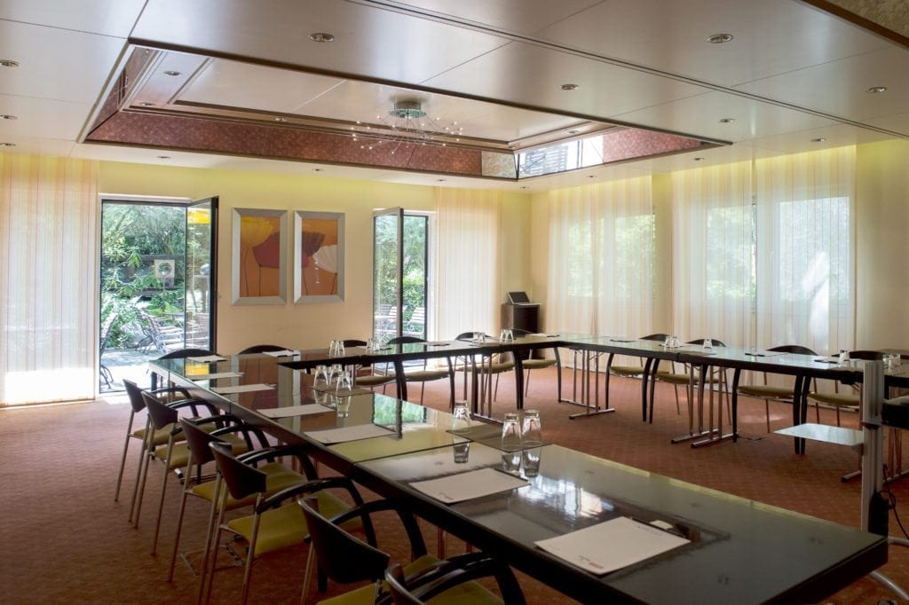 Features of the Atrium Hotel – All rooms are flexibly designed in size thanks to mobile partition walls. They are soundproofed and protect against unwanted eavesdroppers from the neighboring room. The atrium garden or one of our terraces is ideal for conference breaks, group work or just to take a breath.